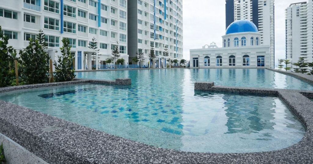 Witness the beauty of Keratiles Ceramic in action at I-Santorini in Penang. This iconic development utilizes our premium swimming pool tiles to create a vibrant, refreshing, and durable aquatic landscape that complements the project’s Santorini-inspired architecture.