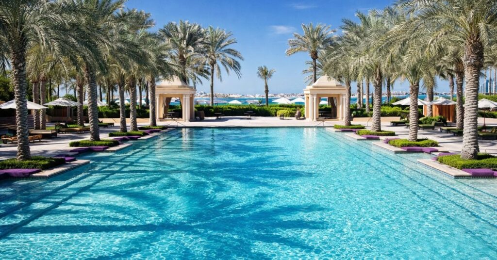 Picture a rooftop pool at a Dubai luxury hotel, catching the afternoon light, water shimmering over deep jade and ocean blue. Or a private villa pool in Palm Jumeirah, where the tile color seems to pull your eye straight through the water. These are the kinds of spaces Dubai is famous for, and behind every one of them is a decision most people never notice: which pool tiles went in.